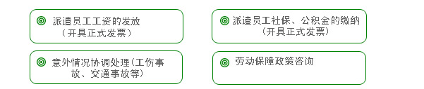 公司的宗旨:诚信、专业、高效、创新、人性化公司的项目:劳务派遣、临时工外包、自主管理、社保、公积金代缴